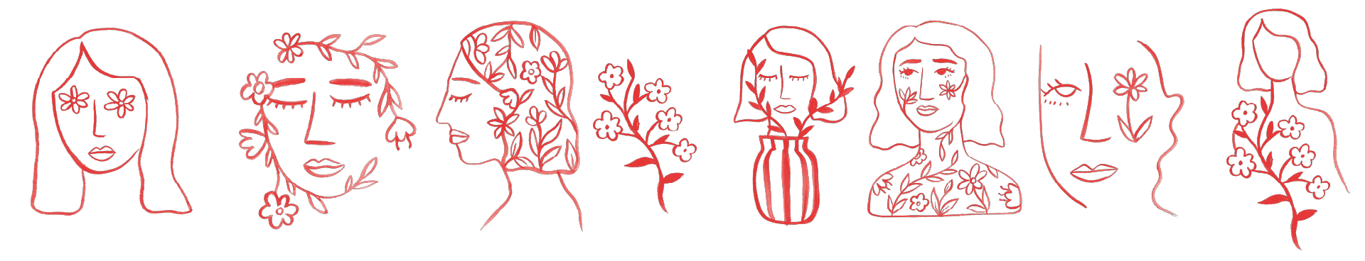 To capture the brand's essence, I researched elements that are consistently present: women and flowers. In terms of technique, it was the use of lines as the foundation for the illustrations.